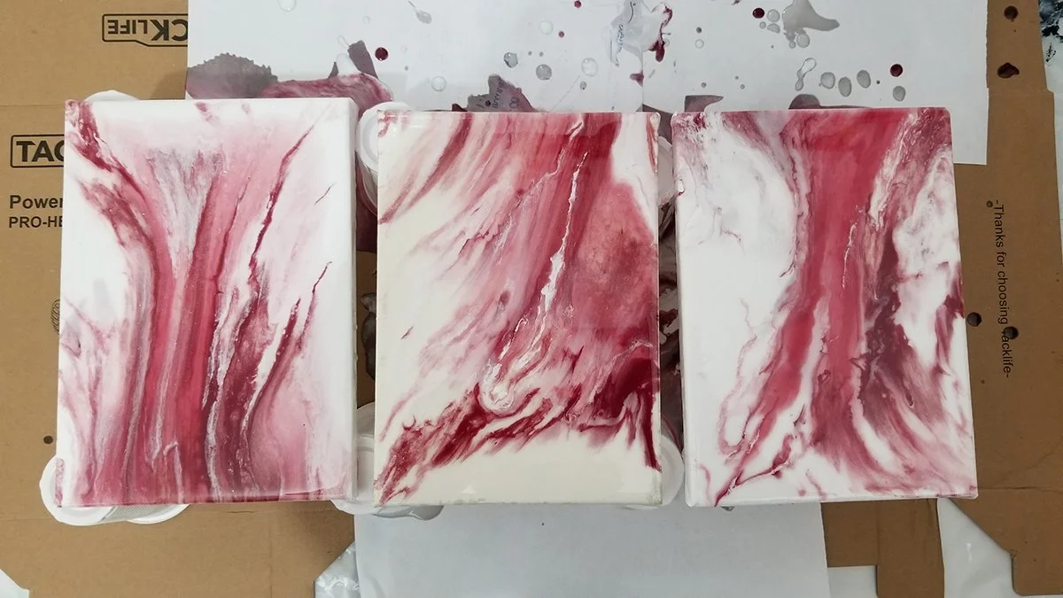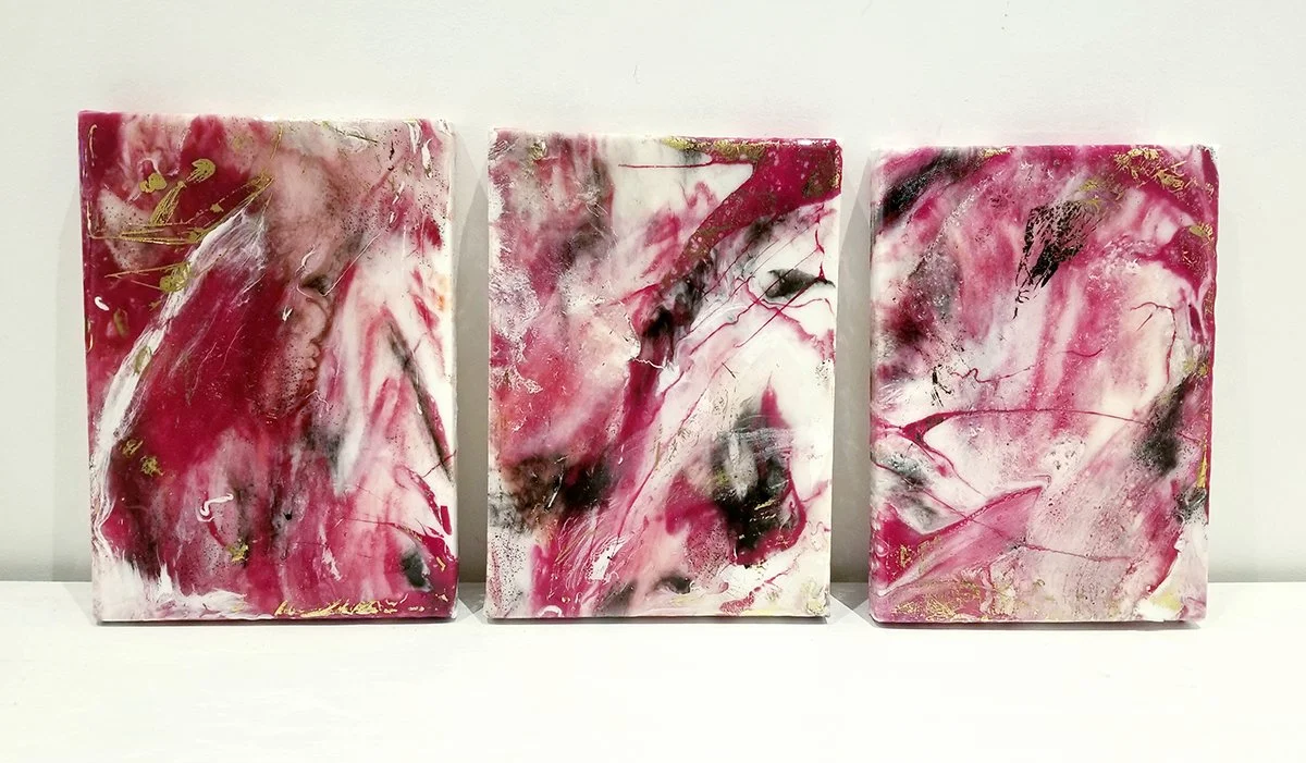 Flow in RedA triptych, resin on canvas , 14.8cm x 21cm View fullsize View fullsize View fullsize View fullsize View fullsize View fullsize