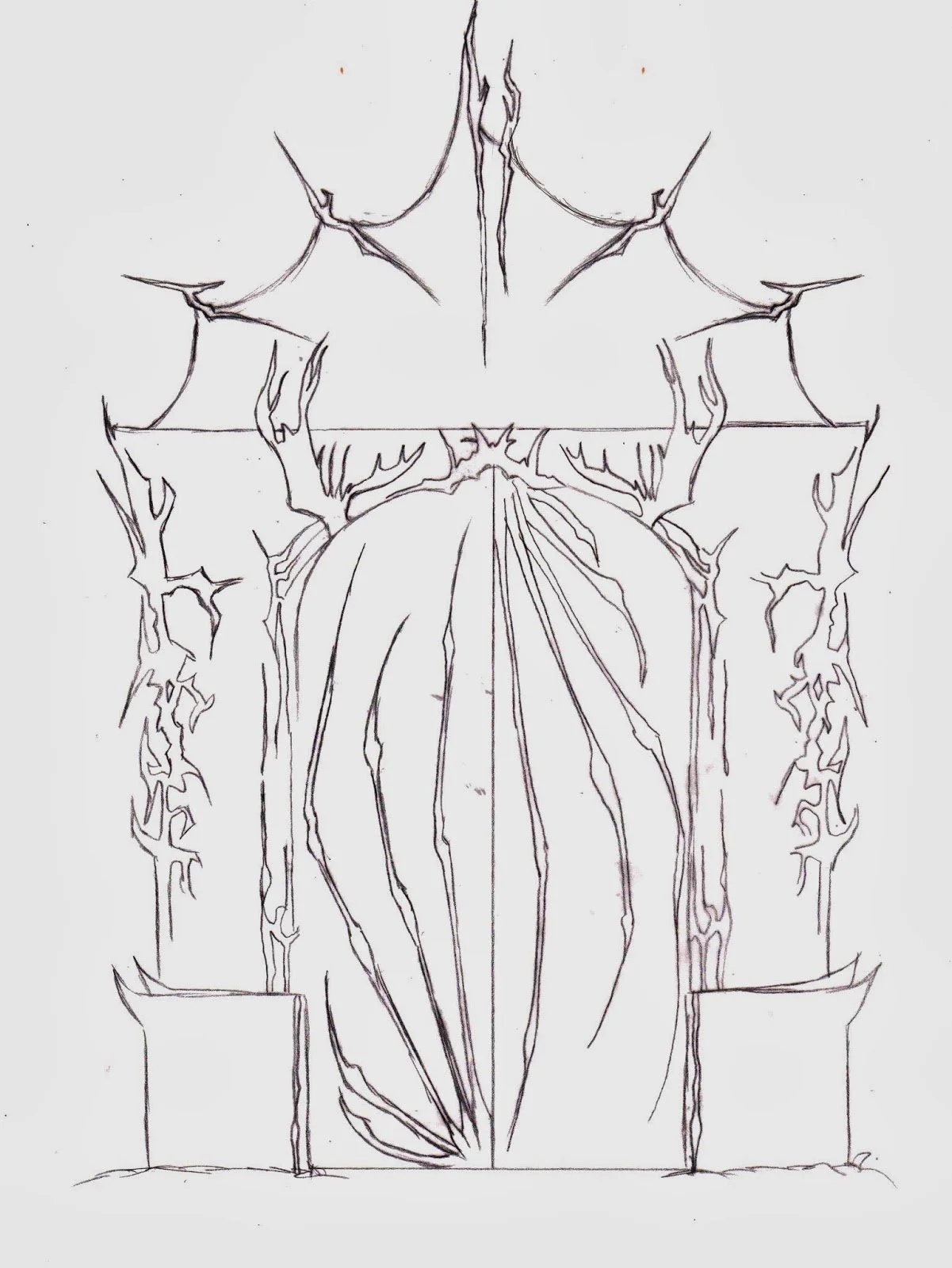 I tidied up the collaged image, started sketching some designs for the doors, using bats as the main inspiration. Then went into Maya to Model the gate.